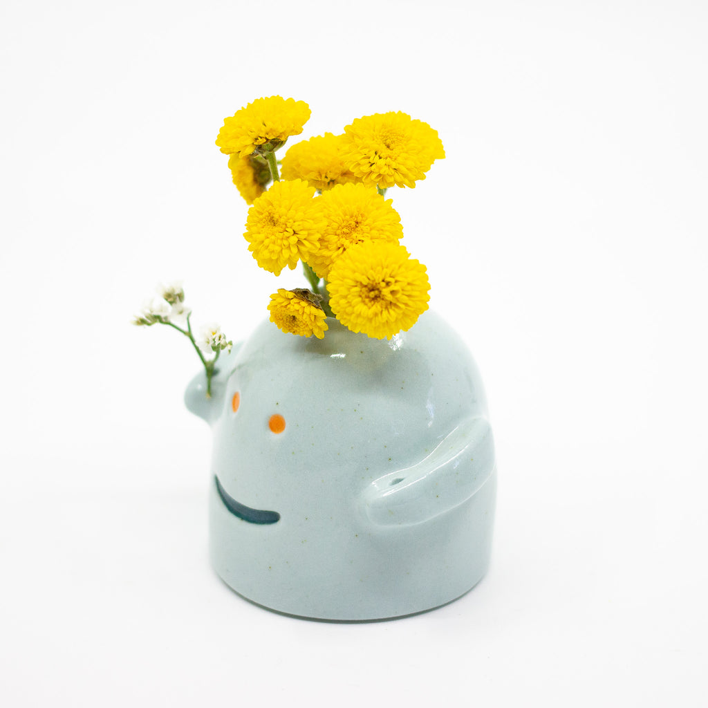 Eden is a fun, playful, and unique ceramic pottery monster vase who is hand made with love using stoneware clay. Whether holding your favourite flower, guarding your shelf, or used as a desk organiser, the Eden monster vase has many uses. Eden monster vase is unique, and has its own individual monster characteristics.