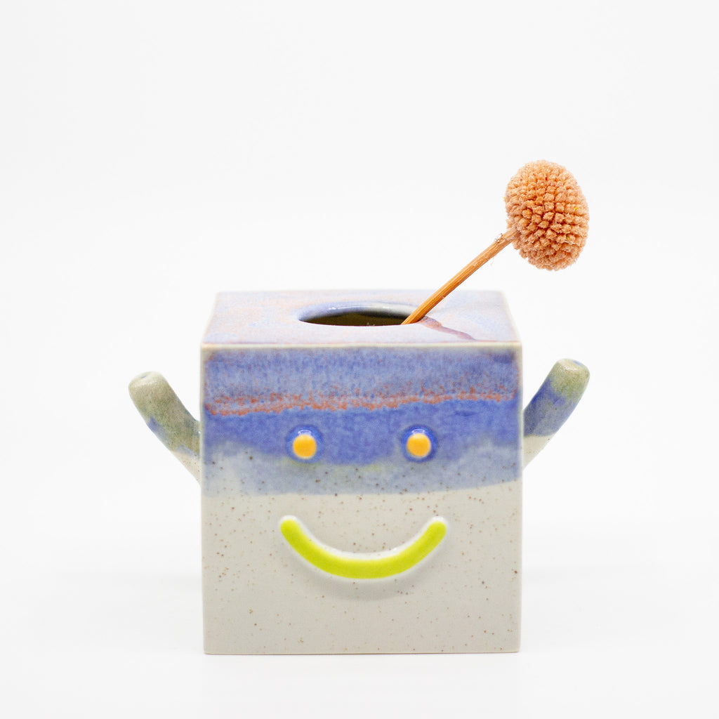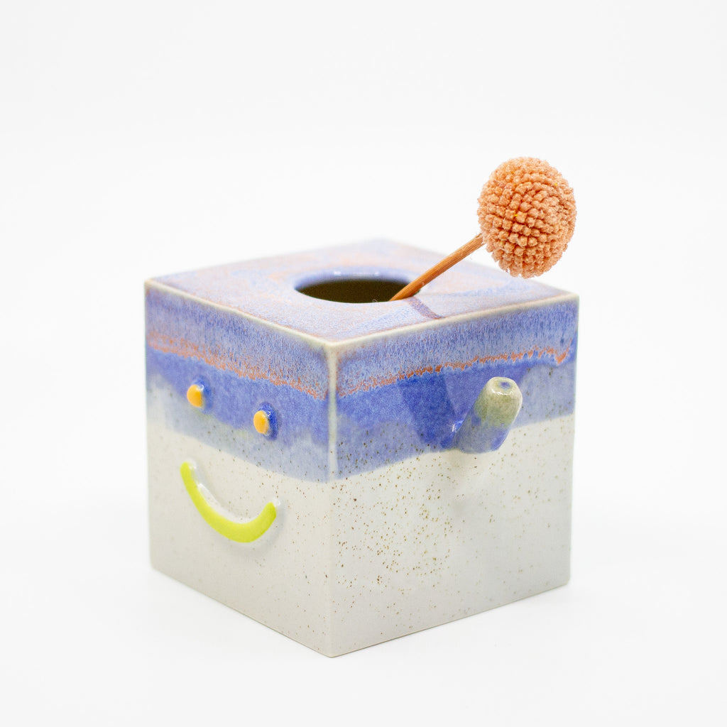 Fen is a one of a kind ceramic pottery vase! With unique paint and glaze, Fen is fun and playful, yet subtle. Fen is happiest when they are displaying an air plant, or a dried flower. Fen is one-of-a kind and loves to reside on a shelf, table, or desk.