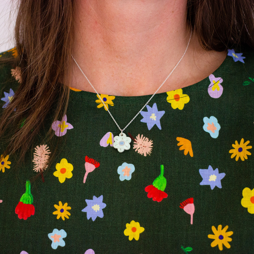 Introduce a dash of colour with the Fennel Necklace, featuring a hand-painted ceramic pendant that captures the intricate details of the fennel plant. Suspended from a sterling silver chain in 45cm length, this necklace offers a fun and colourful accent to any attire. Each pendant is uniquely shaped and painted, ensuring your piece is truly special.