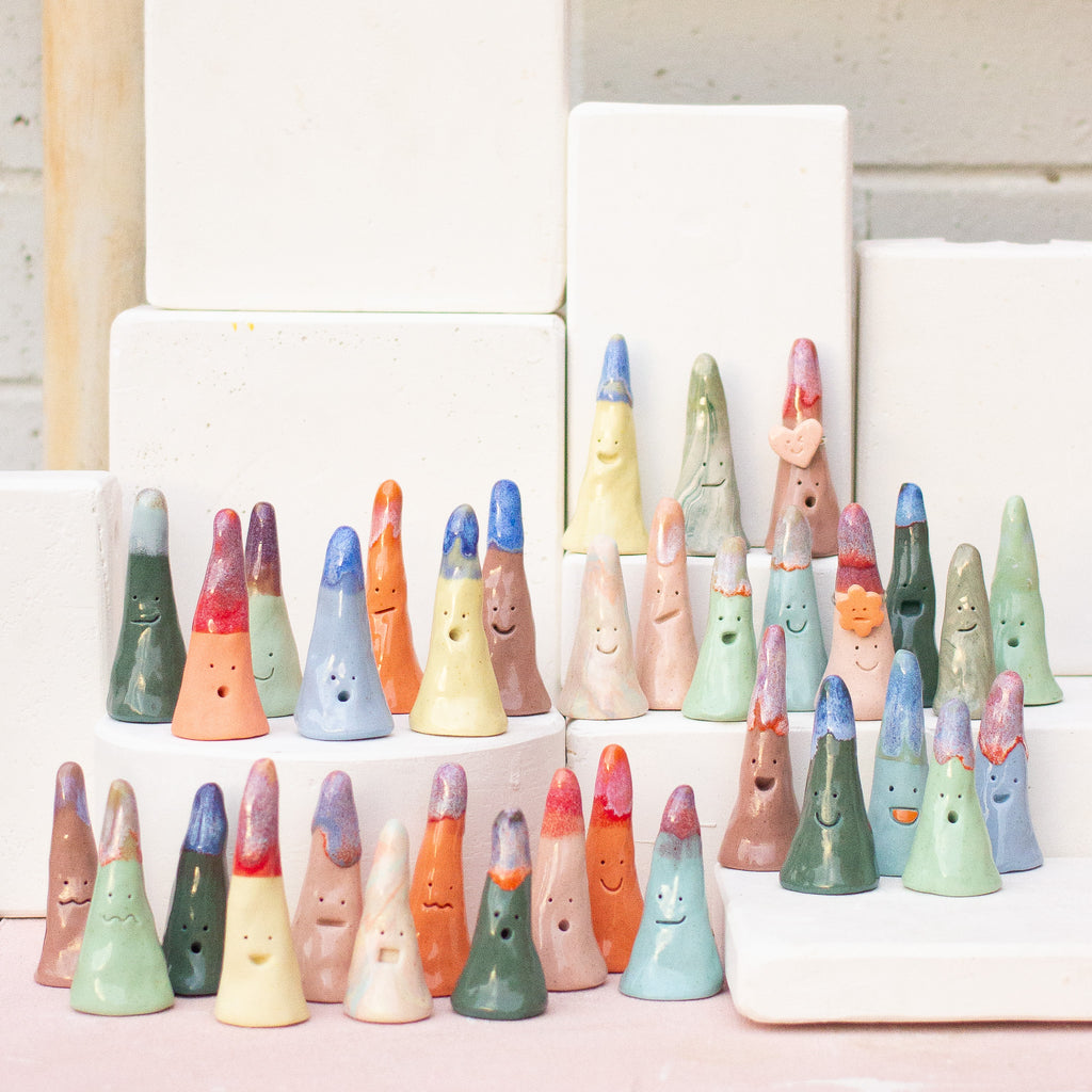 The Mountain series is a fun, bright, and character-filled collection of ceramic ring holders. This collection was developed as a way to minimise waste during the ceramic pottery process. Using leftover clay, shuh. created this series of playful pieces that can hold rings or serve as decorative objects.