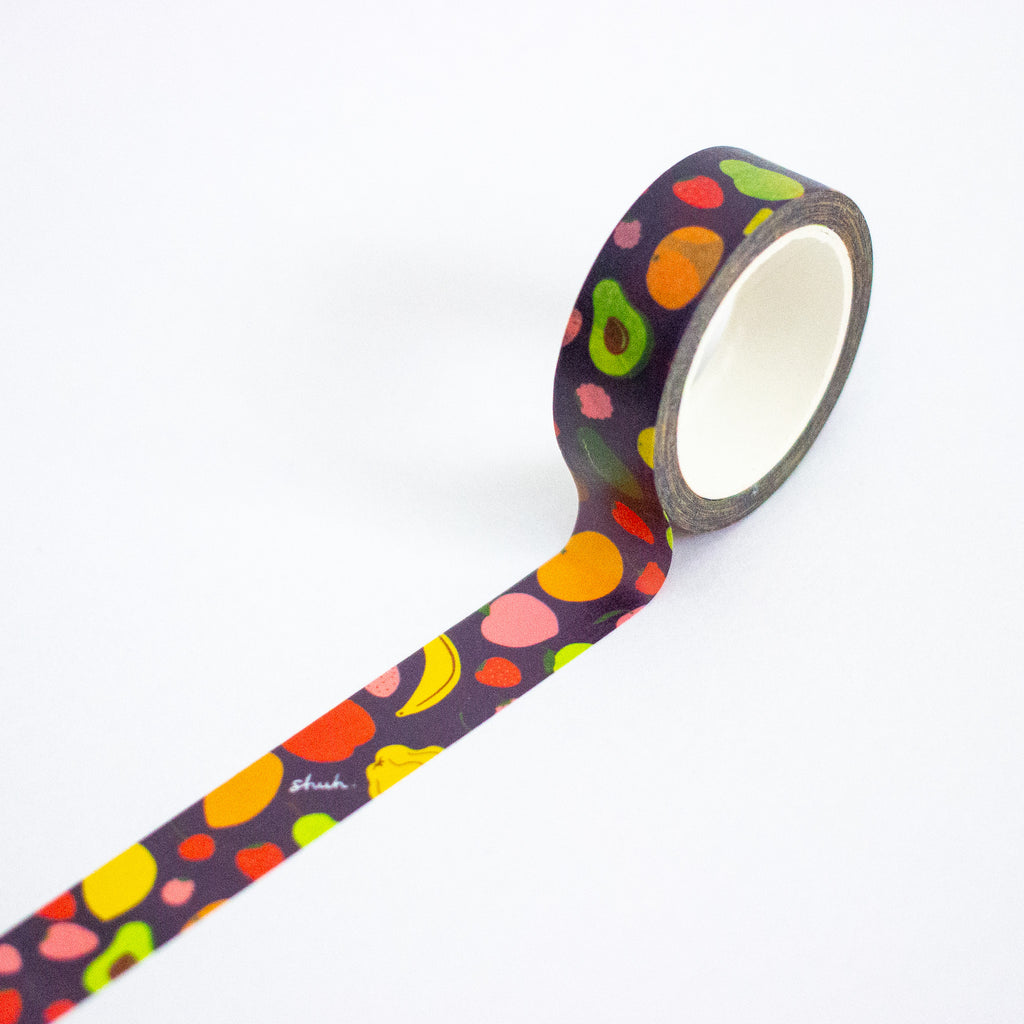 With apples, bananas, pears, avocados (and more!) on a dark background, this tape brings a fresh market vibe to anything it touches. Perfect for journaling, scrapbooking, gift wrapping or sealing a card with a little fruity flair.